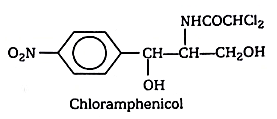 Among the given antibiotics, only chloramphenicol i.e., option D contains a nitro group attached to aromatic ring. Its structure is as follows:
