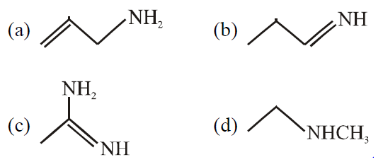 In compound nitrogen  is sp2 hybridized so least basic among all given compounds. the compound  is very strong nitrogenous organic base as lone pair of one nitrogen delocalize in resonance and make another nitrogen negatively charged and conjugate acid have two equivalent resonating structure.