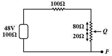 In the given circuit, the potential difference across PQ will be nearest to