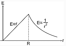 The Electric Field for a uniformly distributed spherical charge is given by