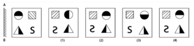 Choose the correct mirror image for the given figure among the four alternatives (1), (2), (3) and (4). The mirror is represented by a line AB.