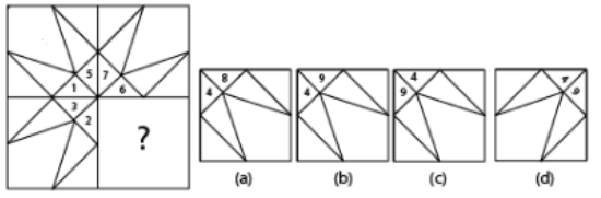 The below question consists of a question figure and followed by four figures (a), (b), (c) and (d). Choose one out of these four figures that can replace ‘?’ to complete the question figure.