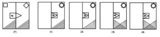 The below question consists of figure (Y) and followed by four alternatives (1), (2), (3) and (4). Choose the correct alternative among the four alternatives such that the pattern would appear like when the figure (Y) is folded at the dotted line.