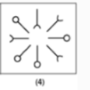 1, 3 contain a V-shaped element inside a geometrical figure.
