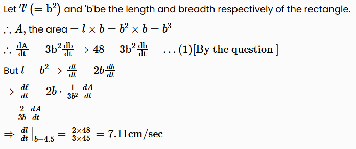 The area of an expanding rectangle is increasing at the rate of 48 cm2/sec. The length of the rectangle is always equal to the square of the breadth. At the instant when the breadth is 4.5 cm, The length is increasing at the rate of-