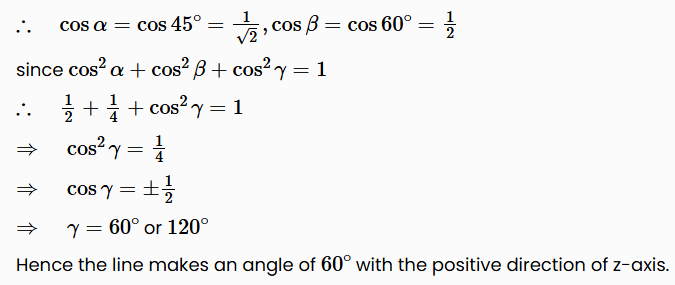 A line makes angles of 45° and 60° with the positive directions of x and y axes respectively. An angle, which the line can make with the positive direction of z-axis is: