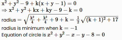 The equation of the smallest circle passing through the intersection of the line x + y = 1 and the circle x2 + y= 9 is-
