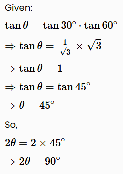 If tanθ = tan 30 ⋅ tan 60 and θ is an acute angle,then 2θ is equal to: