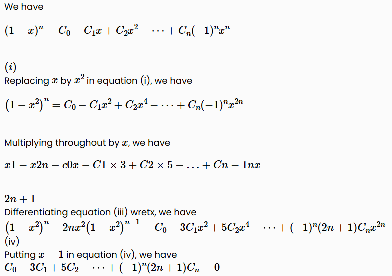 Find the sum of the series : C0 - 3C1 + 5C+.....+  (-1)n (2n + 1) Cn for n > 1
