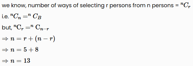 From a group of persons the number of ways of selecting 5 persons is equal to that of 8 persons. The number of persons in the group is