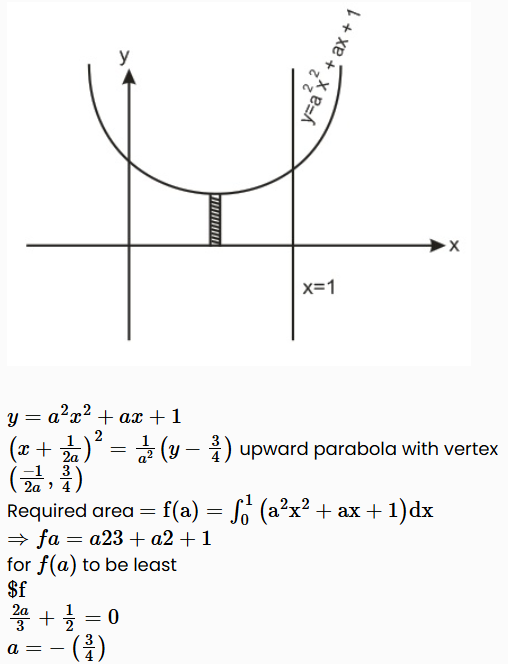 For what value of  'a' is the area bounded by the curve y = ax+ ax + 1 and the straight line y = 0, x = 0 & x = 1 the least ?