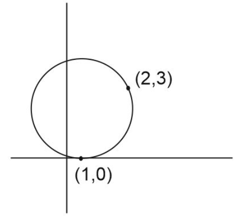 The length of the diameter of the circle which touches the x-axis at the point (1, 0) and passes through the point (2, 3) is