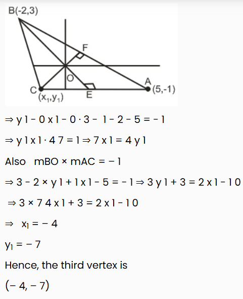 Let the third vertex C be (x1 , y1) since O(0, 0) is the orthocenter