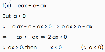 If  a < 0, the function f(x) = eax + e- ax  is a monotonically decreasing function for values of x given by :