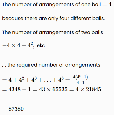There are unlimited number of identical balls of four different colours. How many arrangements of at most 8 balls in row can be made by using them?