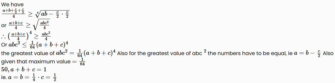 a, b, c are positive numbers and abc2 has the greatest value 1/64 Then