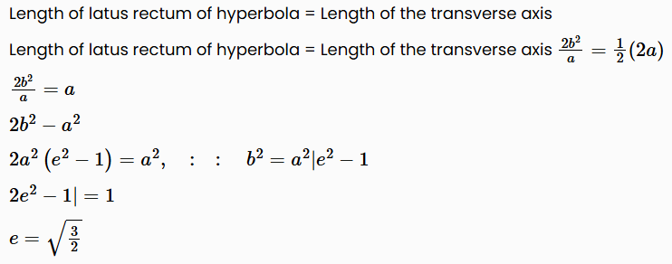 The eccentricity of the hyperbola whose latus rectum is half of its transverse axis, is: