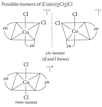 Number of possible isomers for the complex [Co(en)2Cl2]Cl will be (en = ethylenediamine)
