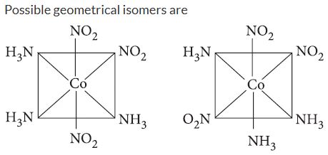 The number of geometrical isomers of the complex [Co(NO2)3(NH3)3] is