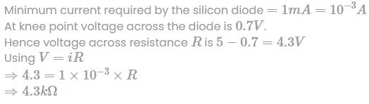 Assume that the silicon diode in the circuit requires a minimum current of 1mA to be above the knee point 0.7V of its I−V characteristics. Also, assume that the voltage across the diodes is independent of the current above the knee point. If VB = 5V what should be the maximum value of R so that the voltage is above the knee point?