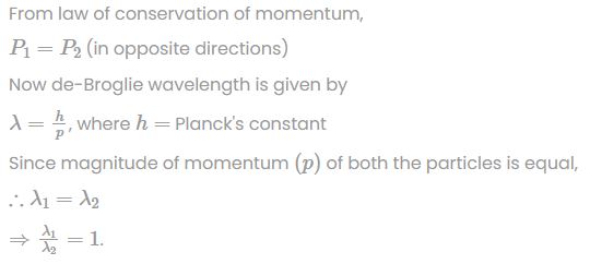 According to de Broglie's hypothesis, the momentum of the particle is inversely proportional to the wavelength of the particle. Use the law of conservation of momentum to relate the momentum of both particles using de Broglie's hypothesis.