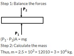 An airplane of a total wing area of 120 m2 is in a level flight at some height. If the pressure difference between the upper and lower surface is 2.5 kPa, then the mass of the airplane is: [Take g = 10 ms-2]