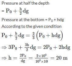 If pressure at half the depth of a lake is equal to 2/3rd the pressure at the bottom of the lake, then the depth of the lake is: