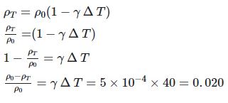 The value of the coefficient of volume expansion of glycerin is 5 x 10-4 K-1. The fractional change in the density of glycerin for a temperature increase of 40°C will be: