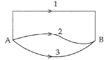 A gravitational field is present in a region and a mass is shifted from A to B through different paths as shown. If W1 W2 and W3 represent the work done by the gravitational force along the respective paths, then: