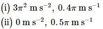 A body describes simple harmonic motion with an amplitude of 5 cm, and a period of 0.2 s. Find the acceleration and velocity of the body when the displacement is 3 cm, and when the displacement is zero.