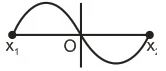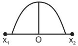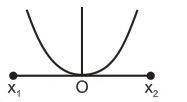 A particle of mass m oscillates with simple harmonic motion between points x1 and x2, the equilibrium position being O. Its potential energy is plotted. It will be as given below in the graph