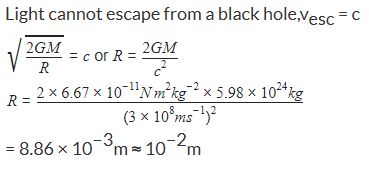 A black hole is an object whose gravitational field is so strong that even light cannot escape from it. To what approximate radius would earth (mass = 5.98 × 1024kg) have to be compressed to be a black hole?