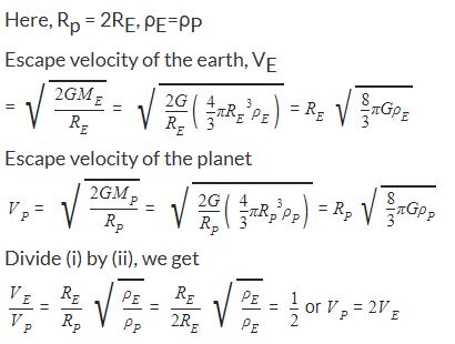 The radius of a planet is twice the radius of earth. Both have almost equal average mass-densities. VP and VE are escape velocities of the planet and the earth, respectively, then