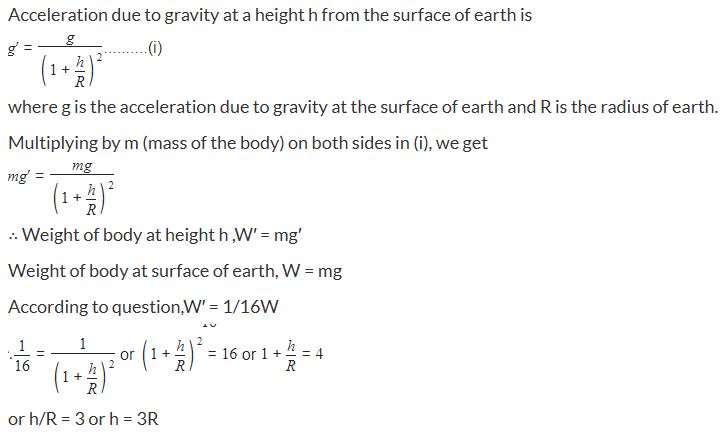 The height at which the weight of a body becomes 1/16th its weight on the surface of earth (radius R), is