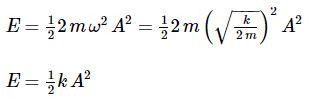 The total mechanical energy of a spring-mass system in simple harmonic motion is E = 1/2mω2A2. Suppose the oscillating particle is replaced by another particle of double the mass while the amplitude A remains the same. The new mechanical energy will