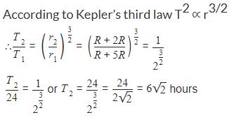 A geostationary satellite is orbiting the earth at a height of 5R above that surface of the earth, R being the radius of the earth. The time period of another satellite in hours at a height of 2R from the surface of the earth is