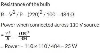 An electric bulb is rated 220 V–100 W. The power consumed by it when operated on 110 V will be