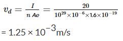 A conductor wire having 1029 free electrons carries a current of 20 A. If the cross-section of the wire is 1 mm2, then the drift velocity of electrons will be
