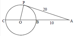 AP is tangent at point P to the circle with centre O and diameter BC. If AP = 20 and AB = 10, what is the length of AO?