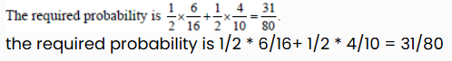 There are two bags A and B. Bag A contains 6 red balls and 10 green balls and Bag B contains 4 red balls and 6 green balls. One bag is selected at random. From the selected bag one ball is drawn at random. What is the probability that the ball drawn is red?