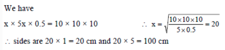 An iron cube of size 10 cm is hammered into a rectangular sheet of thickness 0.5 cm. If the sides of the sheet be in the ratio 1 : 5, then the sides are