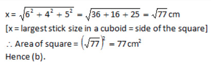 If a square is depicted on the largest stick that can be accommodated in a cuboid having sides 6 cm, 4 cm and 5 cm then what will be the area of the square?