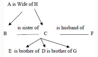 A is the mother of B. B is the sister of C. D is the son of C. E is the brother of D. F is the mother of E. G is the granddaughter of A. H has only two children – B and C.