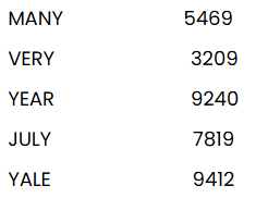 The second column represents the coded form of words in the first column. Each letter is represented by a single digit. Find the code and answer the question below.
