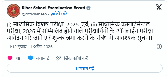 BSEB ने स्पष्ट किया है कि स्क्रूटनी और कंपार्टमेंट परीक्षाओं का परिणाम 31 मई 2026 तक जारी कर दिया जाएगा।