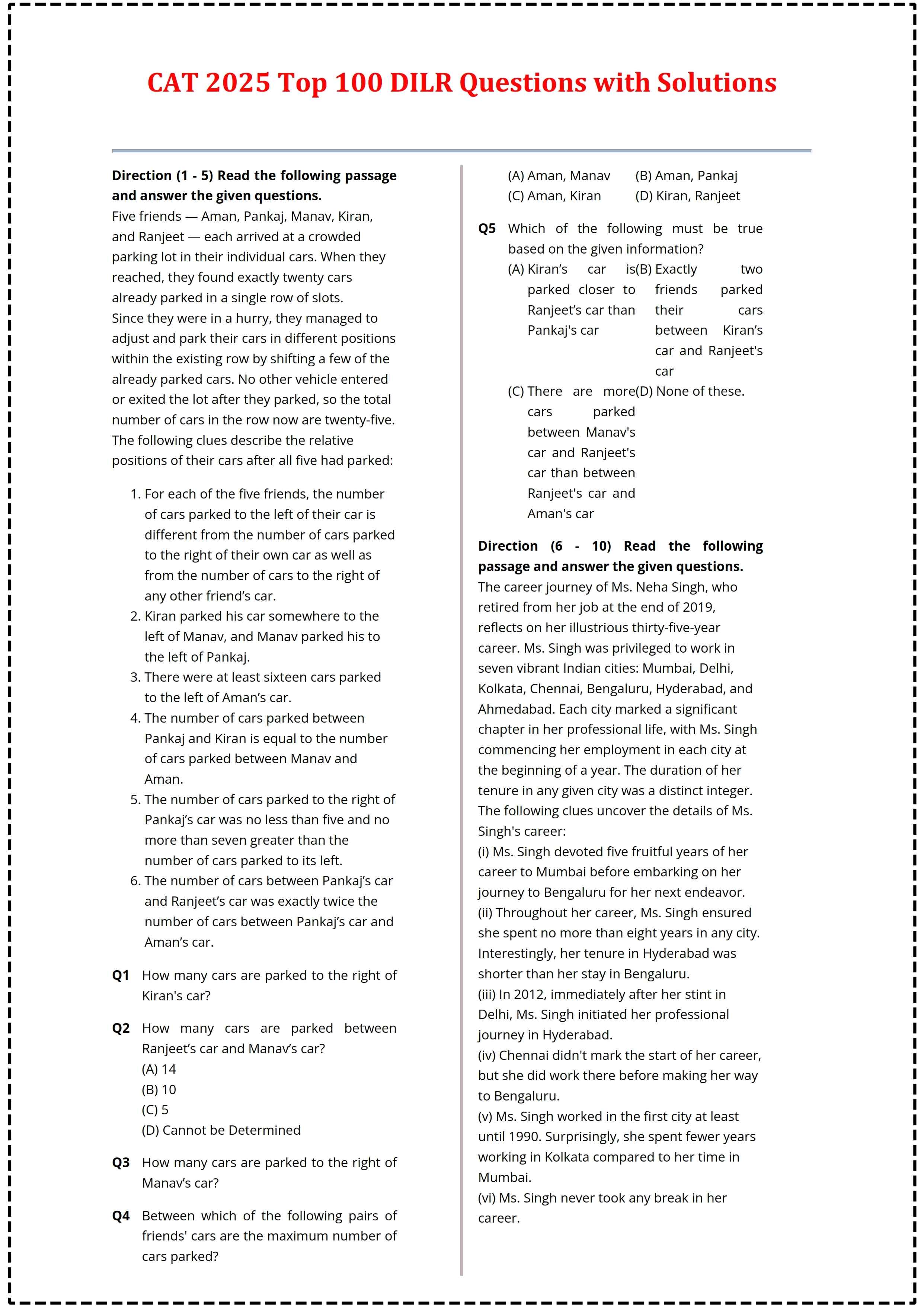 👉 Download PDF- Top 100 CAT 2025 DILR Questions and Solutions PDF
