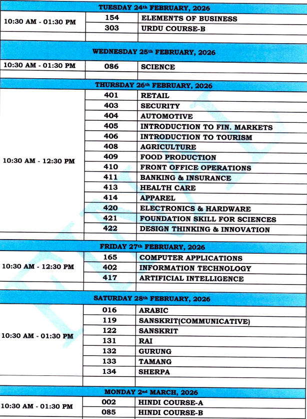👉 Download PDF - CBSE Class 12th Exam Schedule 2026