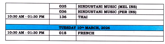 Exam End Date: Tuesday, 10th March 2026