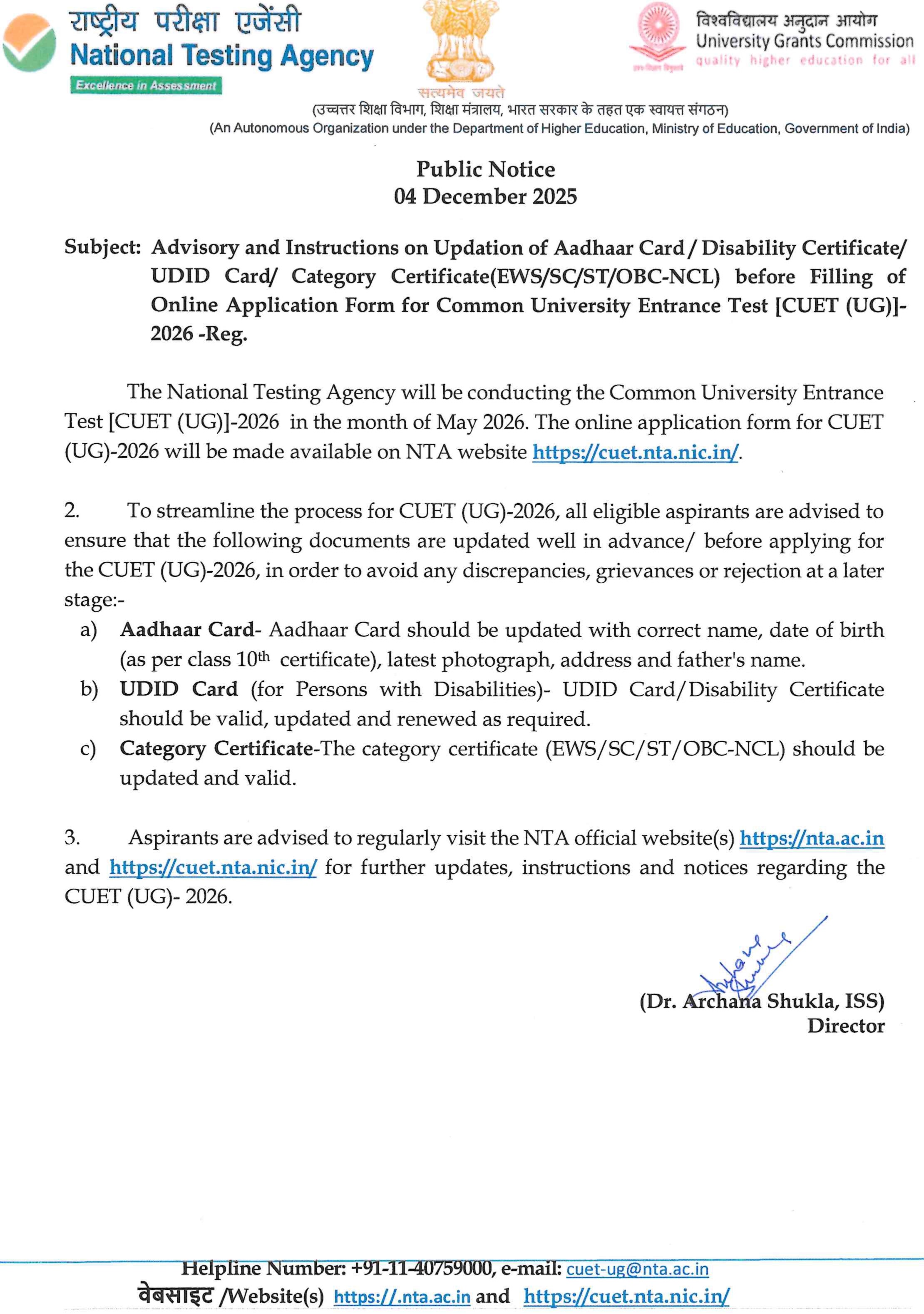 CUET UG 2026: NTA Releases New Guidelines on Aadhaar, UDID & Document Submission