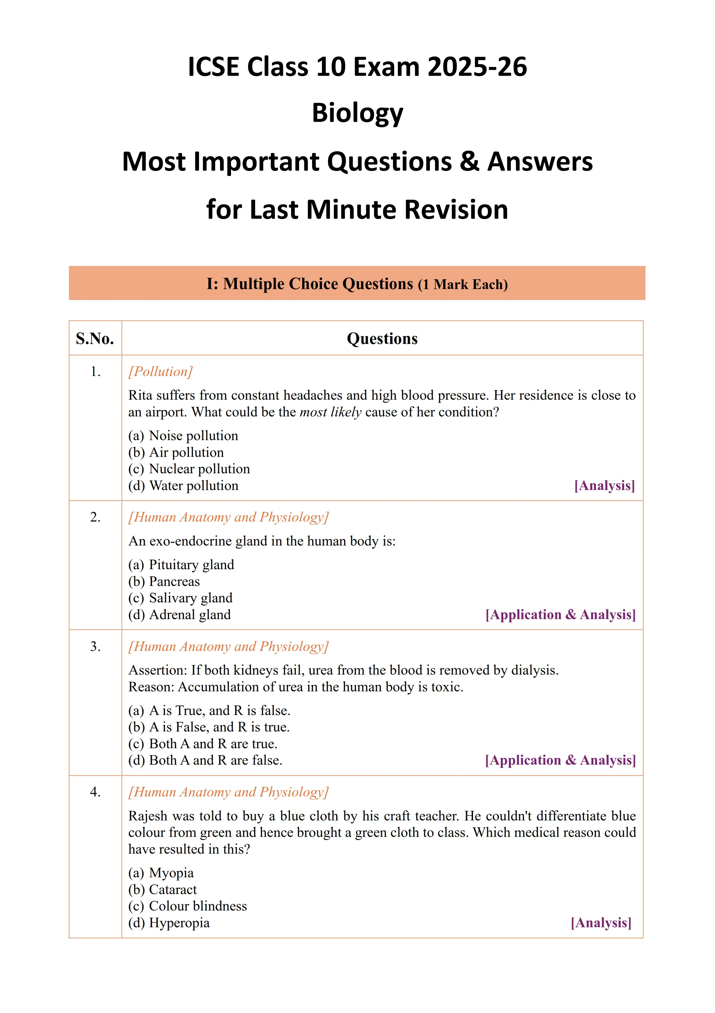 ICSE Class 10 Biology Exam 2025-26 Most Important Questions